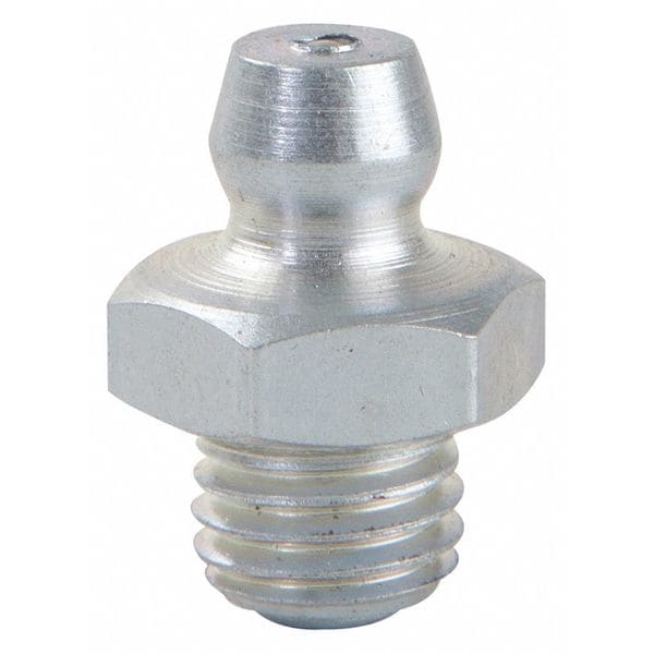 Grease Fitting, Grease Fitting Style Standard, Fitting Material Steel, Fitting Finish Zinc-Plated, Fitting Head Angle Straight, Fitting Thread Size 5/16 In.-24, Fitting Thread Type UNF, Overall Length 5/8 in, Max. Pressure 5,000 psi, Package Quantity 10