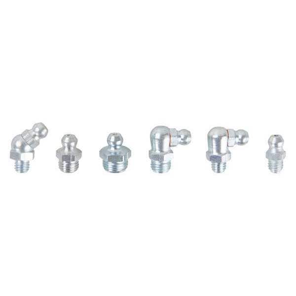 Grease Fitting Kit, Grease Fitting Style Standard, Fitting Material Steel, Dimension Type Metric, Thread Size M10x1, M6x1, M8x1, Thread Type Metric, Taper, Number of Pieces 9