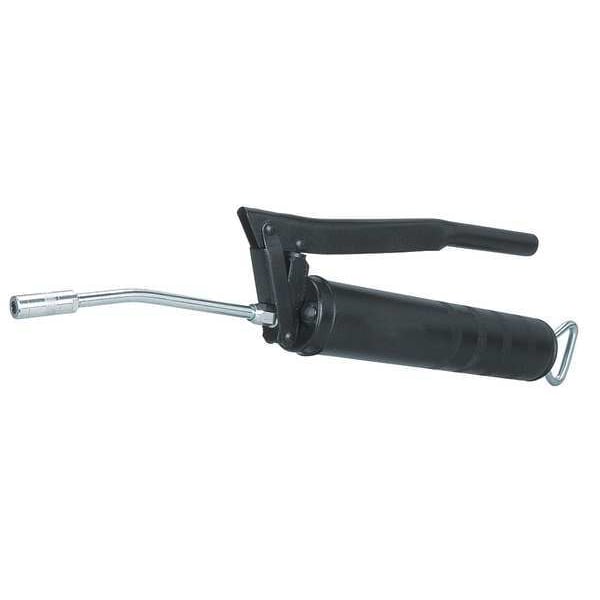Manual Grease Gun, Grease Gun Loading Method Bulk, Cartridge, Grease Gun Handle Style Lever, Nozzle Extension Type Rigid Pipe, Strokes per Oz. 28, Max. Operating Pressure 6,000 psi, Cartridge Capacity 14 oz, Bulk Capacity 14 oz, Pipe Length 6 in, Black, Tube Material Steel, Tether Style Standard Tool (Accessory Needed for Tethering), Variable Stroke / Full Stroke Full Stroke, 1 mL, Tool Length 14 1/8 in, For Use With Grease Up to NLGI 2, Application For Everyday Lubrication of Grease Fittings