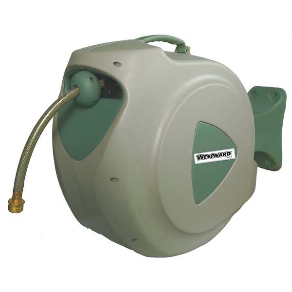Spring Return Garden Hose Reel, Garden Hoses, 150 psi, 60 psi, Hose Capacity 100 ft (1/2 in I.D.), Drive Type Spring Return, Hose Reel Type Wall Mount Hose Reel, Includes Hose Yes, Single Pedestal, Speed Limited Retraction Yes, Corrosion-Resistant Yes, Reel Material Polypropylene, Mounting Location Wall, Hose Color Beige, Hose Cover Material PVC, Hose Tube Material PVC, Hose Fitting A Gender Female, Hose Fitting A Size 3/4 in