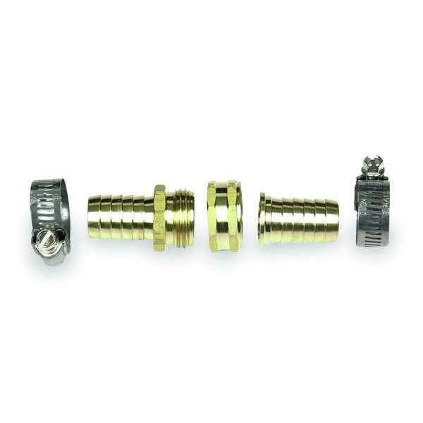 Garden Hose Repair Fitting, Rigid, For Hose I.D. 3/4 in, Hose Fitting A Gender Male, Hose Fitting B Gender Female, Hose Fitting A Size 3/4 in, Hose Fitting B Size 3/4 in, Hose Fitting A Connection Type NH, Hose Fitting B Connection Type NH, Fitting Material Brass x Brass, Includes Stainless Steel Worm Gear Clamps