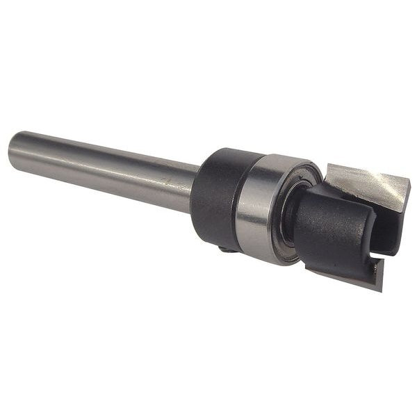 Flush Trim Profile Router Bit, Carbide Tipped, 1/2 in Cutter Dia., Fractional Inch, 3/8 in, 2 3/8 in, 1/4 in