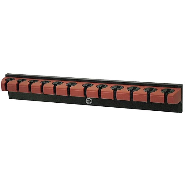 Wrench Rack, Bar Height 2 1/2 in, Bar Length 15 3/4 in, Bar Width 2 in, Color Red, Includes Mounting Hardware Not Applicable, Material Plastic, Mounting Location Tool Box Side, Tool Cart Side, Mounting Type Magnetic, Number of Slots 12, Overall Height 2 1/2 in, Overall Length 15 3/4 in, Overall Width 2 in, Rack Type Wrench Rack, Total Load Capacity Not Applicable