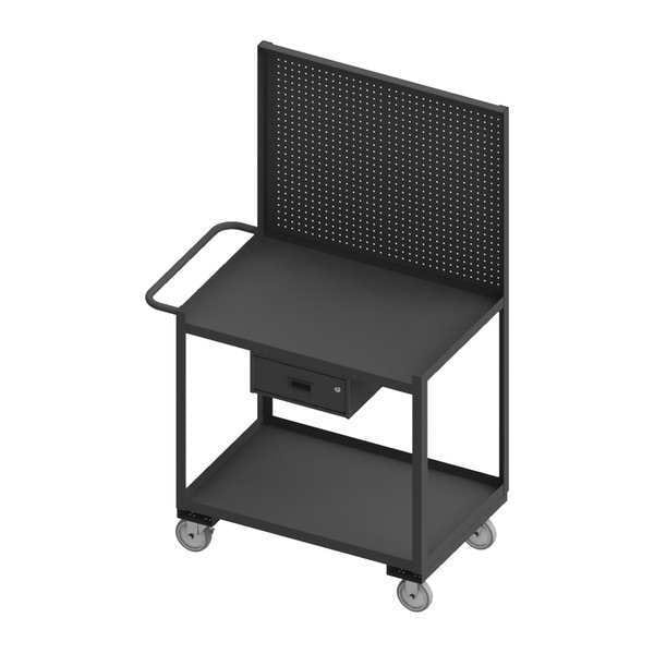 Steel Mobile Workstation with Pegboard Storage, Assembled/Unassembled Assembled, Bottom Shelf Lip Height 1 1/2 in, Caster Brake Type Side Pedal Brake, Caster Mounting Type Plate, Caster Wheel Dia. 5 in, Caster Wheel Type Standard, Caster Wheel/Tread Material Polyurethane, Caster/Wheel Configuration (2) Rigid, (2) Swivel with Brake, Caster/Wheel Mounting Location Standard, Color Gray