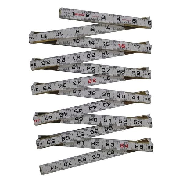 Modular Mason Folding Rule, Thickness 1.81 in, Graduation Marks 1/16 in, Coating Abrasive Resistant Epoxy, Graduation Color Red, Flexibility Rigid, Graduation Mark Style Etched, Edge Style Not Applicable, Orientation Vertical, Folding Rule Type Outside Read, Backing Material Not Applicable, Finish Unfinished, System of Measurement Metric/SAE, Accuracy +/-1.4mm, Rule Type Folding Rule, Numeric Marks Inches, Millimeters, Numeric Format Fractional, Length - SAE 6 ft, Length - Metric 1,800 mm