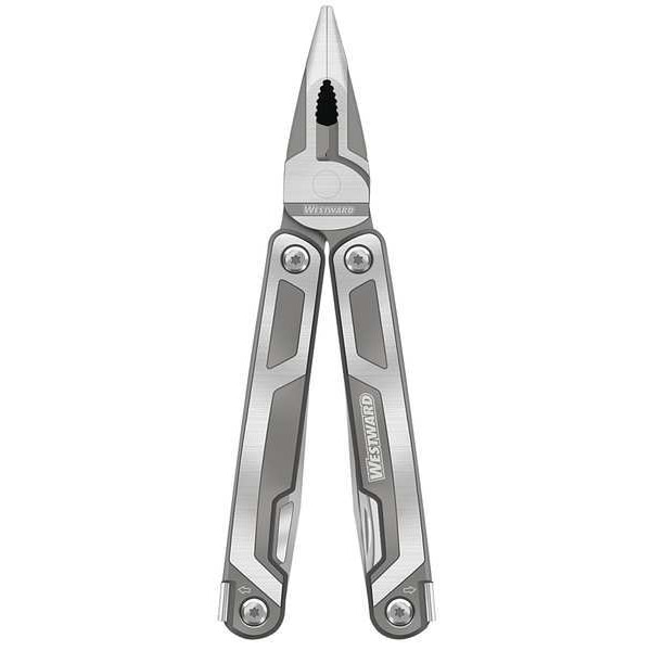 Multi-Tool, Blade Edge Type Serrated, Straight, Blade Length 2 3/8 in, Handle Color Gray, Handle Material Stainless Steel, Handle Style Ergonomic