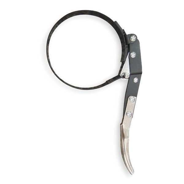 Oil Filter Wrench, Oil Filter Wrench with Handle, For Outside Diameter 4 in to 4 3/8 in, Handle Length 8 7/16 in, Strap Width 1 1/16 in, Strap Length 13 13/16 in, Strap Material Alloy Steel, Silver, Alloy Steel, Electroplated