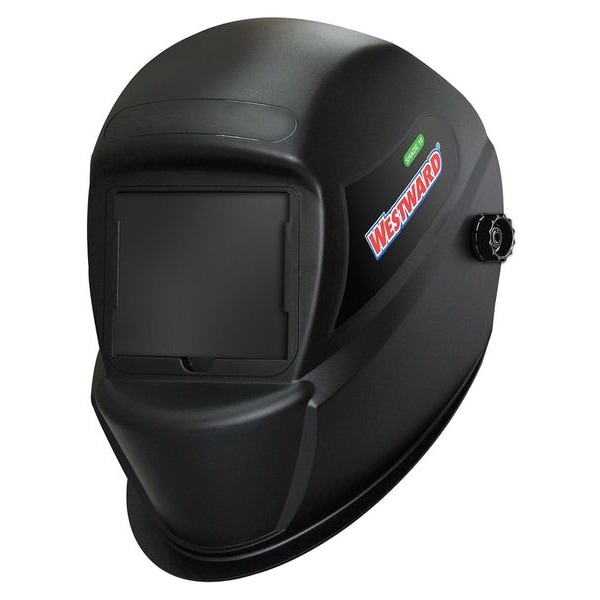 Welding Helmet, Color Black, Compatible Suspension Brand Name Westward, Compatible Suspension Grainger Part Number 45L593, Features 5 pt Adjustment Headgear with Removable Sweatband, Grind Mode No, Helmet Material Nylon, Helmet Type Passive, Helmet Width 23 cm, Includes Extra Front Cover Lens, Includes Batteries No, Lens Color Black, Lens Material Glass, Light State 3, Magnification No, Number of Arc Sensors 0, Standards ANSI Z87.1,CSA Z94.3, Suspension Adjustment Type Ratchet