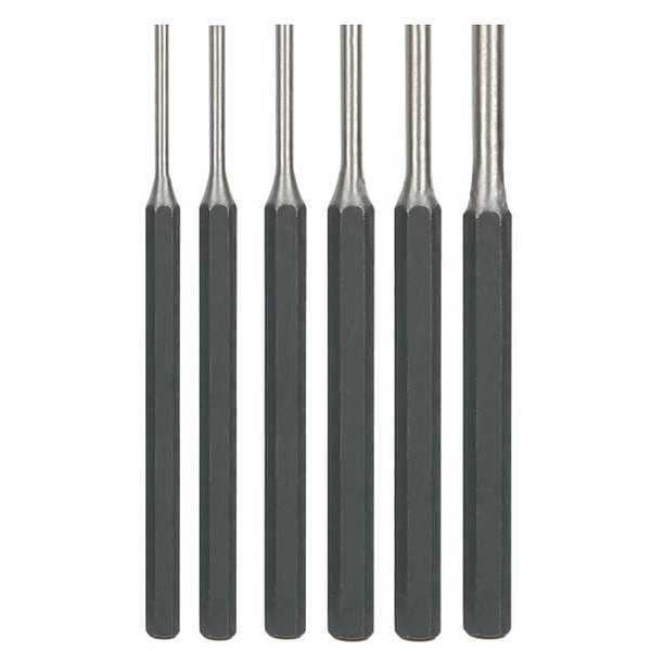 Drive Pin Punch Set, Set Type Punch Set, Types Included Length Pin Punch, Number of Pieces 6, Blade Tip Shape Straight, Blade Width 1/8 in, 5/32 in, 3/16 in, 7/32 in, 1/4 in, 5/16 in, Includes Handle No, Chisel Type Length Pin Punch, Includes Handguard No, Material Applications For Softer Metal & Wood, Includes 1/4 x 6 in, 1/8 x 6 in, 3/16 x 6 in, 5/16 x 6 in, 5/32 x 6 in, 7/32 x 6 in, Tip Size 1/8 in, 5/32 in, 3/16 in, 7/32 in, 1/4 in, 5/16 in, Material Steel, Measurement Type SAE