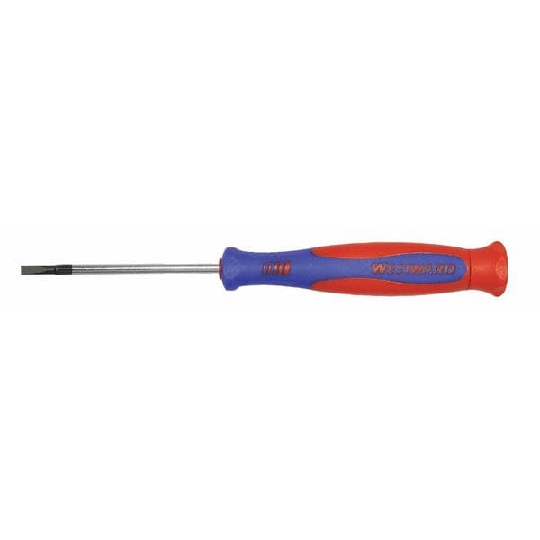 When you need to remove or insert screws with precision, the Westward 401K82 Precision Screwdriver Slotted 7/64" 2 1/2 in Round is the tool for the job. Made of alloy steel, this slotted screwdriver has a chrome finish and black tip. The handle design allows for easy handling and gripping with its ergonomic rotating cap. It also has an overall length of 6 1/4 in., making it perfect for hard to reach places. This screwdriver measures 2 1/2 in round and features a 7/64" tip size. When you need to work on small items that require fine tuning, the Westward Precision Screwdriver Slotted 7/64" 2 1/2 in Round is your go-to tool.