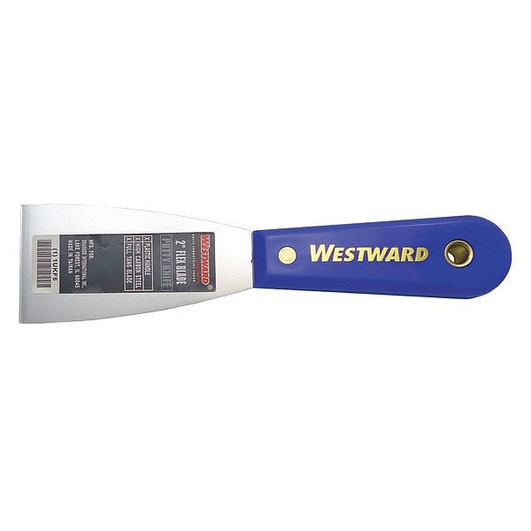 The Westward 1UKF5 Flexible Putty Knife is the perfect tool for scraping and spreading. This blue putty knife has a full tang blade made of carbon steel. It has an overall length of 7 3/4 in. and a blade width of 2 in. Its blade is flexible, allowing you to reach into small crevices or tight spaces easily. The nylon handle is 4 in. long and features a tapered design for comfort and control while working with it. If you are looking for a tool that will help you scrape off paint, spread filler, or apply sealant, this Westward Flexible Putty Knife is the right choice for you.