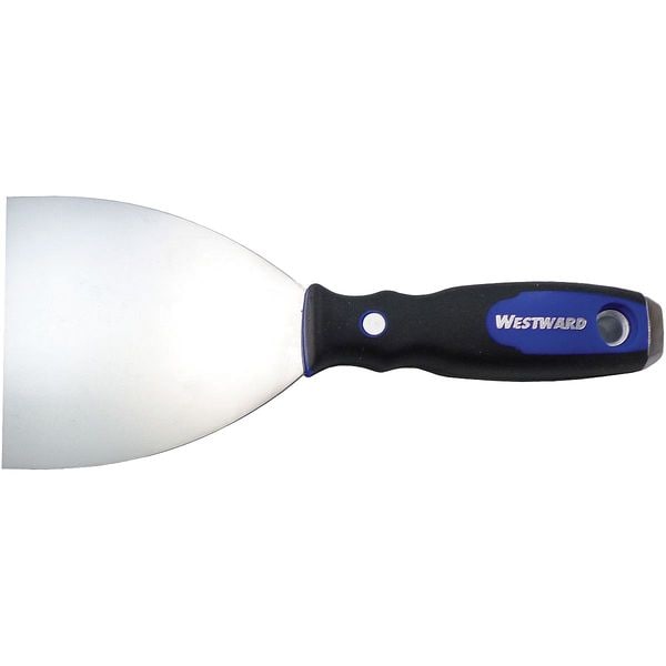 This Westward 46A907 Putty Knife is a versatile tool that can be used for a variety of applications. The stainless steel blade ensures it will last a long time, while the full tang design means you can rely on it to keep its shape and resist bending. With an overall length of 9 1/4 in., this flexible putty knife allows you to work in hard-to-reach areas. It has a 4" blade width and 4" blade length, as well as a black/blue handle color. The polypropylene/TPR/steel handle provides superior grip and comfort, even when your hands are wet or oily. Designed with an ergonomic hammer head design, the putty knife gives you more control over heavy scraping jobs. If you want the flexibility of working with different materials with one tool, then this Westward Putty Knife is for you.