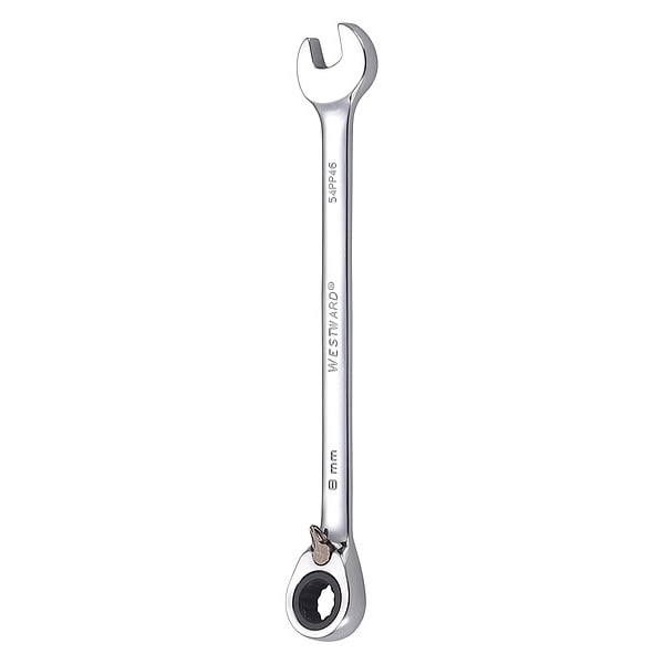 When you need to work with a range of fasteners, the Westward 54PP46 Ratcheting Wrench is the tool for you. The open-end allows you to slide it into position, while the box-end provides better leverage around nuts and bolts. The chrome alloy steel wrench has a ratcheting configuration that makes it easy to handle nuts and bolts. With an overall length of 5 1/2 in., this combination wrench features a 12-point head size of 8 mm. It also has an alloy steel handle that is one piece, which helps prevent breakage and ensures durability. When you need high quality tools, look no further than the Westward 54PP46 Ratcheting Wrench.