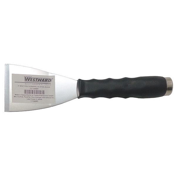 When you are working with putty or caulk, the Westward 13A691 Scraper is the tool to have on hand. It has a sturdy blade that will remove material efficiently and effectively. The carbon steel blade measures 3 in. by 3 in., making it ideal for scraping surfaces clean of putty, caulk, paint and other substances. The bent blade design makes it easy to get into tight spaces where other scrapers can't reach. This scraper has an overall length of 8 in., while its polypropylene handle is 4 1/2 in long. You can choose from black or red handles depending on your preference. If you work with caulking or putty, this Westward Scraper is the perfect addition to your tool kit.