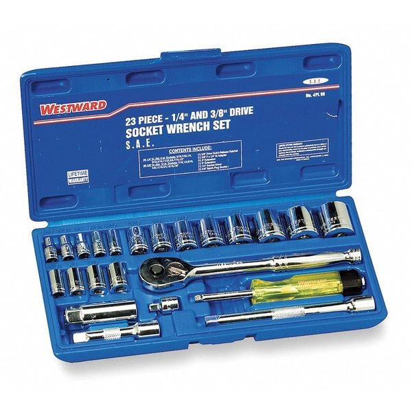 Socket Wrench Set, SAE, 1/4", 3/8" Dr, 23 pc