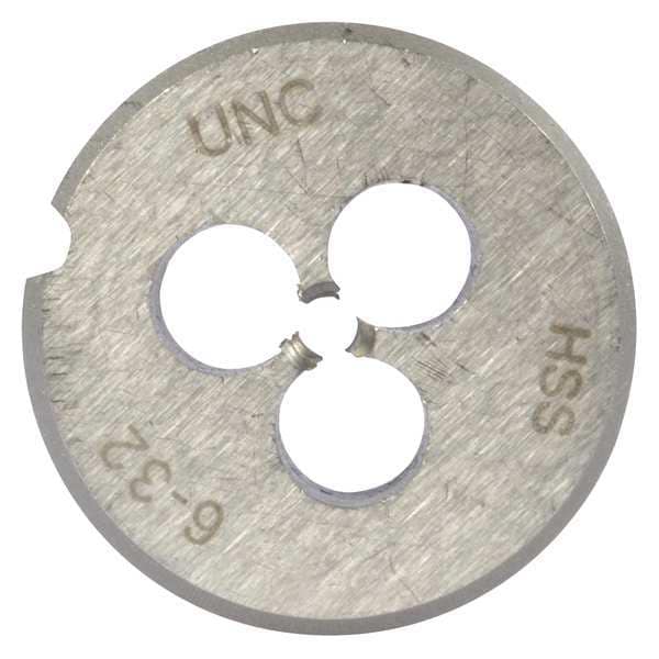 Round Threading Die, Thread Size #6-32, UNC, Solid, Outside Dia. 1 in