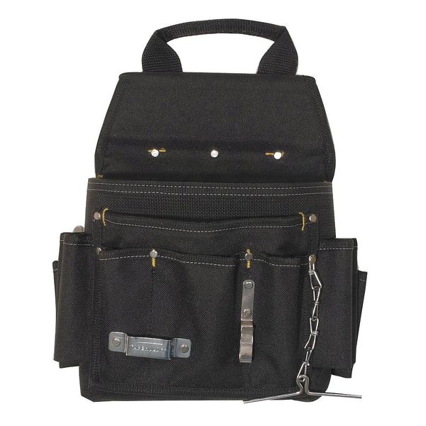 If you are looking for a tool pouch that can hold all your tools, this Westward 13T128 is the one to get. It has 12 pockets and fits belts up to 2-3/4". The black polyester tool pouch is double layered and light weight. It also has a carry handle and heavy duty snap closure. There is an electrical tape strap on the top of the pouch for securing items like electrical tape or wire cutters. This pocketed belt features open top closure and can fit any belt up to 2 3/4" wide. With its large number of pockets, this Westward 13T128 Tool Pouch will allow you to keep all your tools in one place.