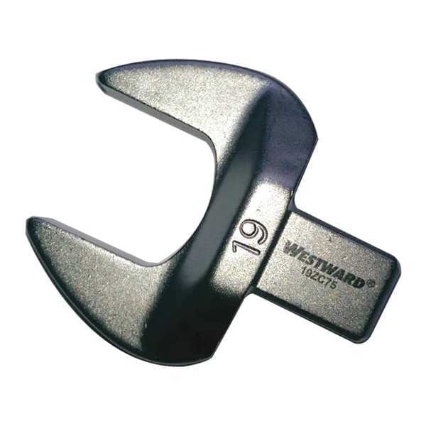 Interchangeable Torque Wrench Head, Drive Size 9mm x 12mm, Size 19 mm, Overall Length 1 13/16 in, Maximum Torque 99 ft-lb, 0 Degrees , Open End, Alloy Steel, Plastic, Satin, SAE/Metric