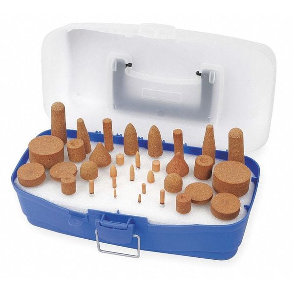 Vitrified Mounted Point Kit, Abrasive Material Aluminum Oxide, Grit 60 and 36, Number of Pieces 20, Grade Medium/Coarse