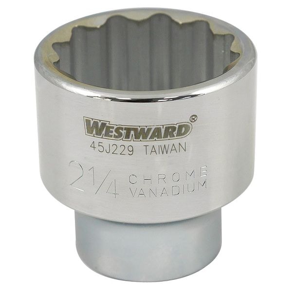 WESTWARD 1 in Drive, 2-1/4" SAE Socket, 12 Points, Steel, Chrome, 2 1/4 in