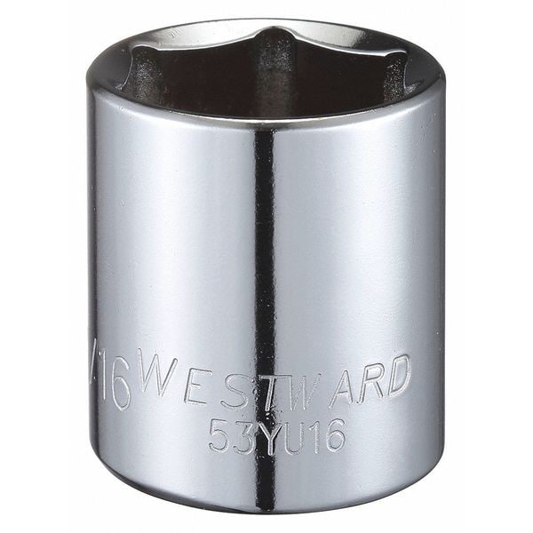 WESTWARD 1/2 in Drive, 1-1/16" Hex SAE Socket, 6 Points, Steel, Chrome, 1 1/16 in