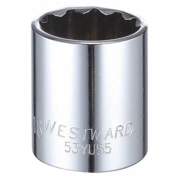 WESTWARD 1/2 in Drive, 1-1/16" Triple Square SAE, Socket, 12 Points, Steel, Chrome, 1 1/16 in