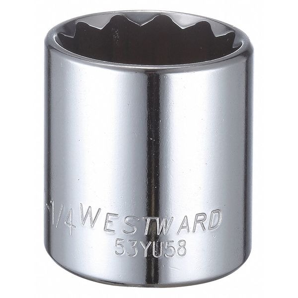 WESTWARD 1/2 in Drive, 1-1/4" Triple Square SAE, Socket, 12 Points, Steel, Chrome, 1 1/4 in