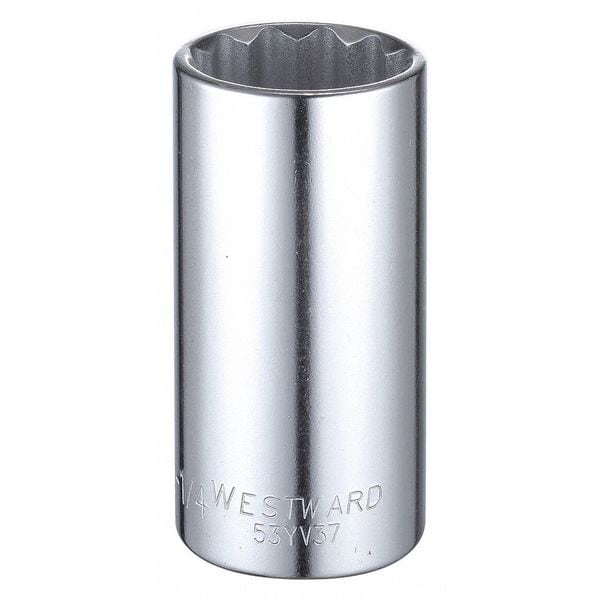 WESTWARD 1/2 in Drive, 1-1/4" Triple Square SAE Socket, 12 Points, Steel, Chrome, 1 1/4 in