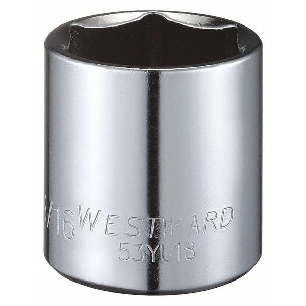 WESTWARD 1/2 in Drive, 1-3/16" Hex SAE, Socket, 6 Points, Steel, Chrome, 1 3/16 in