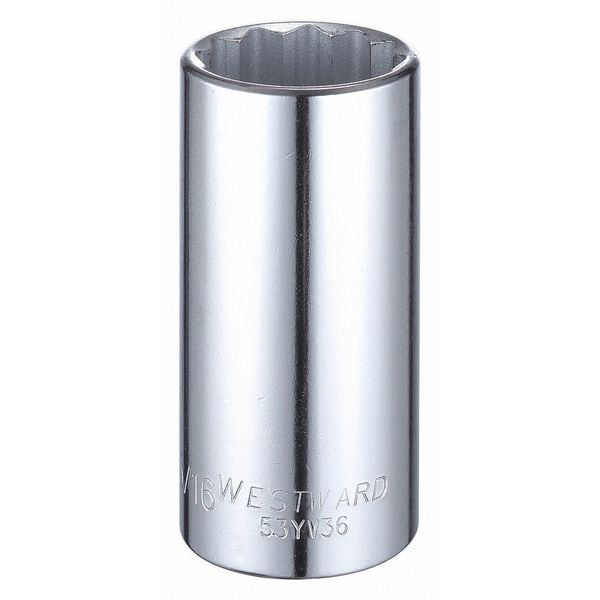 WESTWARD 1/2 in Drive, 1-3/16" Triple Square SAE Socket, 12 Points, Steel, Chrome, 1 3/16 in