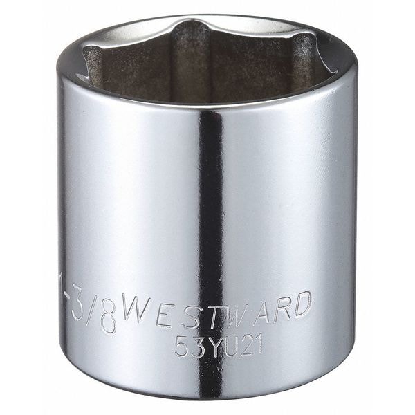 WESTWARD 1/2 in Drive, 1-3/8" Hex SAE, Socket, 6 Points, Steel, Chrome, 1 3/8 in