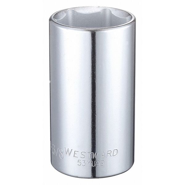 WESTWARD 1/2 in Drive, 1-3/8" Hex SAE Socket, 6 Points, Steel, Chrome, 1 3/8 in