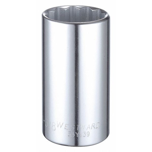 WESTWARD 1/2 in Drive, 1-3/8" Triple Square SAE Socket, 12 Points, Steel, Chrome, 1 3/8 in