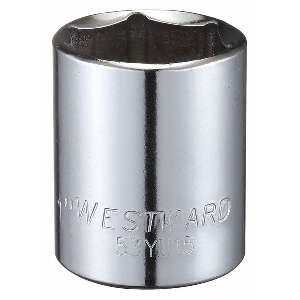 WESTWARD 1/2 in Drive, 1" Hex SAE, Socket, 6 Points, Steel, Chrome, 1 in