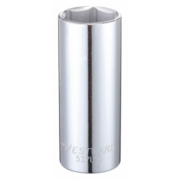 WESTWARD 1/2 in Drive, 1" Hex SAE Socket, 6 Points, Steel, Chrome, 1 in