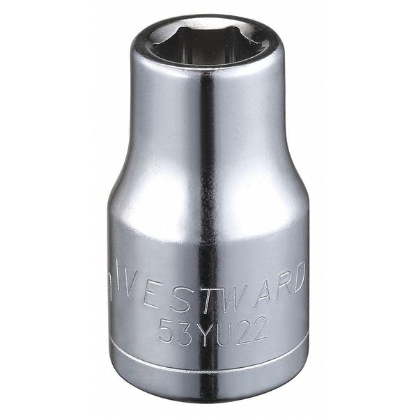 WESTWARD 1/2 in Drive, 10mm Hex Metric Socket, 6 Points, Steel, Chrome, 10 mm