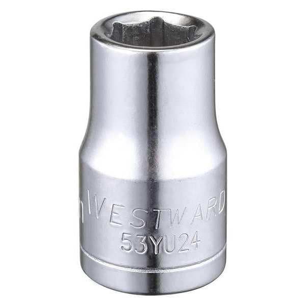 WESTWARD 1/2 in Drive, 12mm Hex Metric Socket, 6 Points, Steel, Chrome, 12 mm