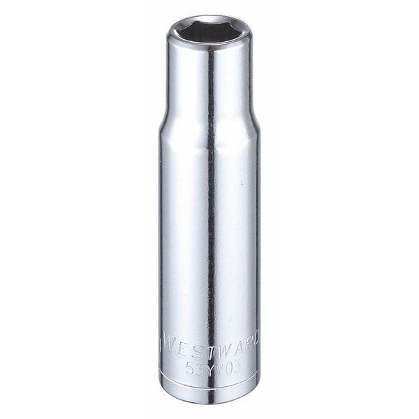 WESTWARD 1/2 in Drive, 12mm Hex Metric, Socket, 6 Points, Steel, Chrome, 12 mm