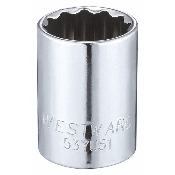 WESTWARD 1/2 in Drive, 13/16" Triple Square SAE Socket, 12 Points, Steel, Chrome, 13/16 in