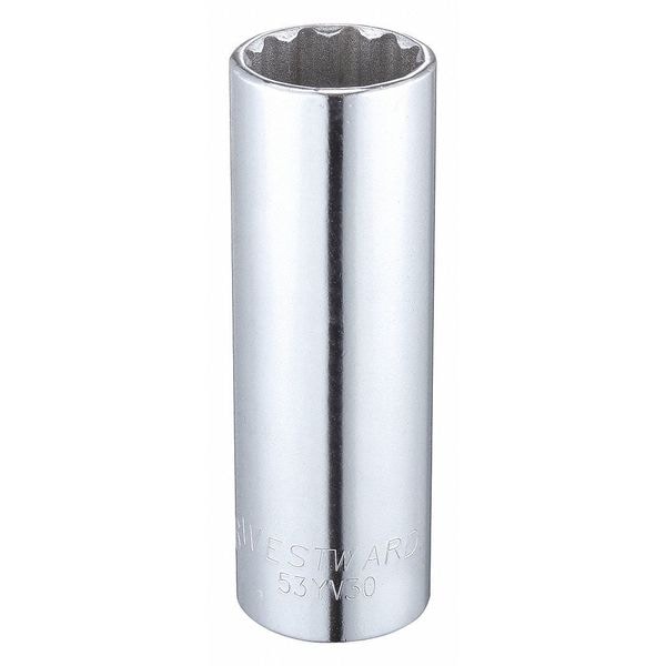 WESTWARD 1/2 in Drive, 13/16" Triple Square SAE, Socket, 12 Points, Steel, Chrome, 13/16 in