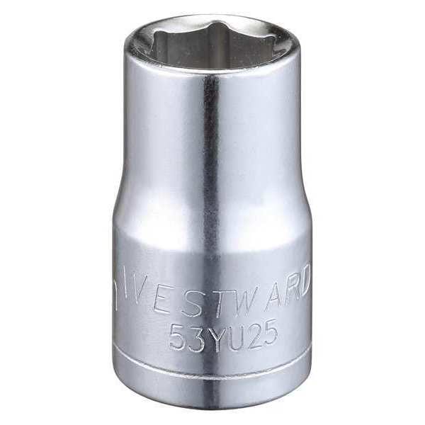 WESTWARD 1/2 in Drive, 13mm Hex Metric Socket, 6 Points, Steel, Chrome, 13 mm