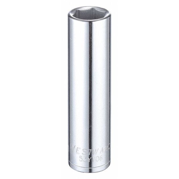 WESTWARD 1/2 in Drive, 15mm Hex Metric, Socket, 6 Points, Steel, Chrome, 15 mm