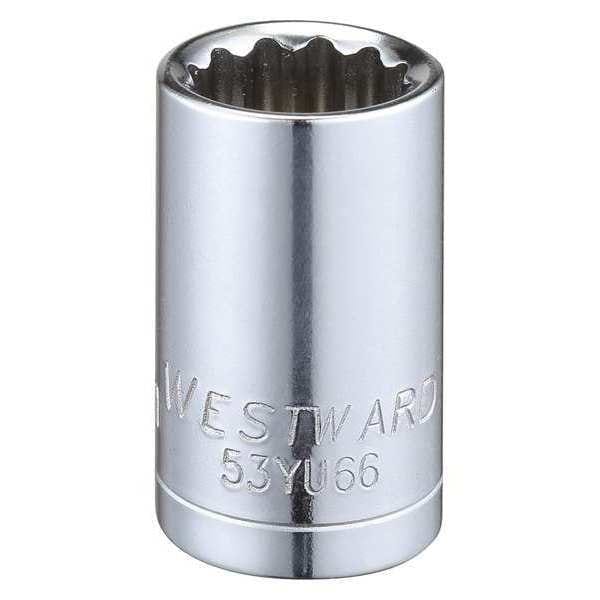 WESTWARD 1/2 in Drive, 15mm Triple Square Metric Socket, 12 Points, Steel, Chrome, 15 mm