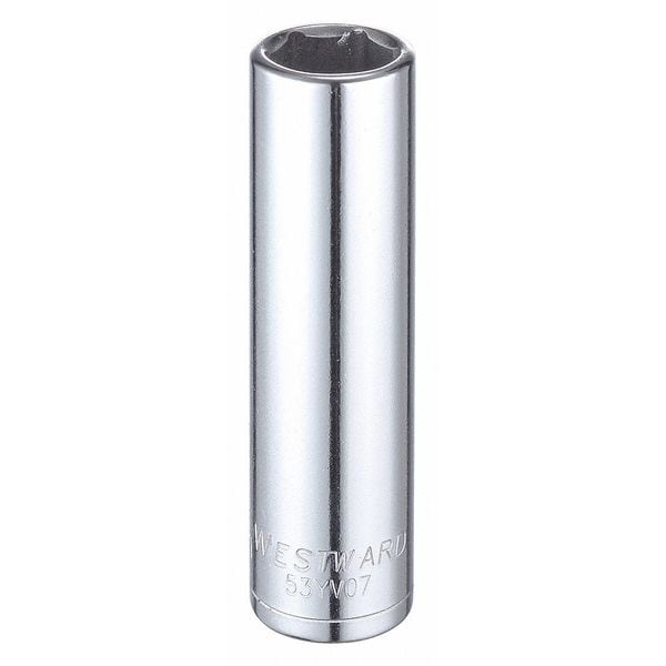 WESTWARD 1/2 in Drive, 16mm Hex Metric Socket, 6 Points, Steel, Chrome, 16 mm