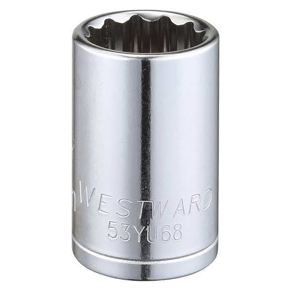 WESTWARD 1/2 in Drive, 17mm Triple Square Metric, Socket, 12 Points, Steel, Chrome, 17 mm