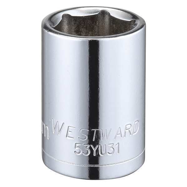 WESTWARD 1/2 in Drive, 19mm Hex Metric Socket, 6 Points, Steel, Chrome, 19 mm