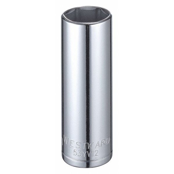 WESTWARD 1/2 in Drive, 21mm Hex Metric, Socket, 6 Points, Steel, Chrome, 21 mm