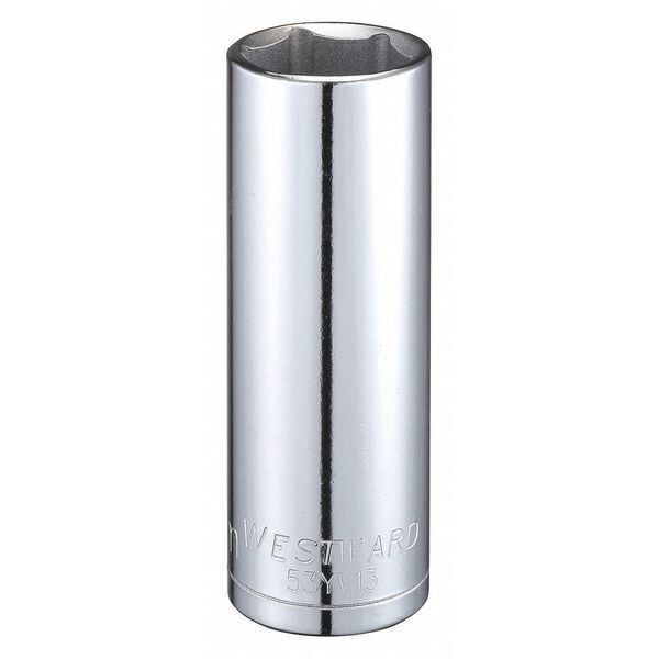 WESTWARD 1/2 in Drive, 22mm Hex Metric Socket, 6 Points, Steel, Chrome, 22 mm