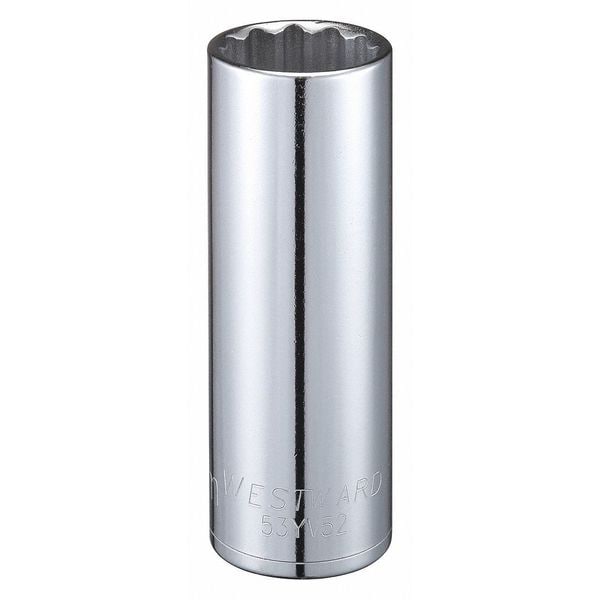 WESTWARD 1/2 in Drive, 22mm Triple Square Metric, Socket, 12 Points, Steel, Chrome, 22 mm