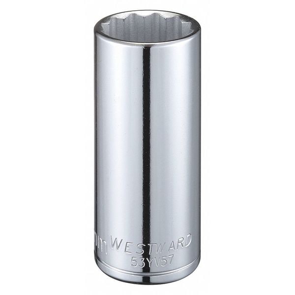 WESTWARD 1/2 in Drive, 27mm Triple Square Metric, Socket, 12 Points, Steel, Chrome, 27 mm